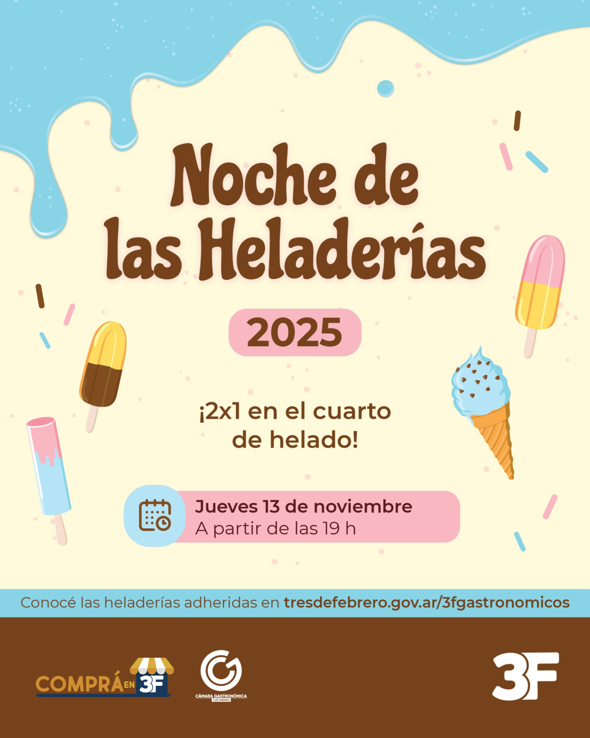 Este jueves 13 de noviembre, la Asociación de Fabricantes Artesanales de Helados y Afines organiza la novena edición de la «Noche de las Heladerías» y los comercios de Tres de Febrero se suman para ofrecerte una experiencia llena de sabor. A partir de las 19 h, vas a poder aprovechar 2×1 en el cuarto de helado en distintos locales del municipio.