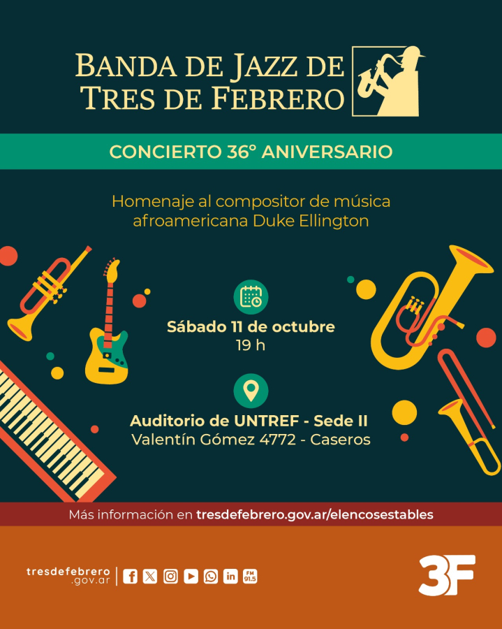 La banda de Jazz 3F nació en octubre de 1989 y actualmente su director es el maestro Ezequiel Giunta. Desde su formación realiza actos y conciertos públicos en entidades culturales y barriales del municipio. Además se presenta en escuelas del distrito para realizar conciertos didácticos para jóvenes y adolescentes.