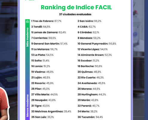 El Instituto para el Desarrollo Social Argentino, volvió a colocar a Tres de Febrero en el puesto N° 1 del ranking «Índice Fácil».
