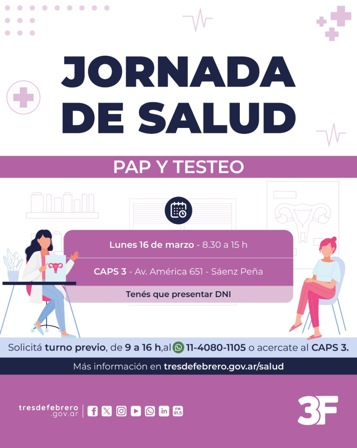 Esta actividad requiere solicitar turno previo, podés hacerlo comunicándote al 11 4080-1105 o acercándote al CAPS 3 de 9 a 16 h. No olvides traer tu DNI.