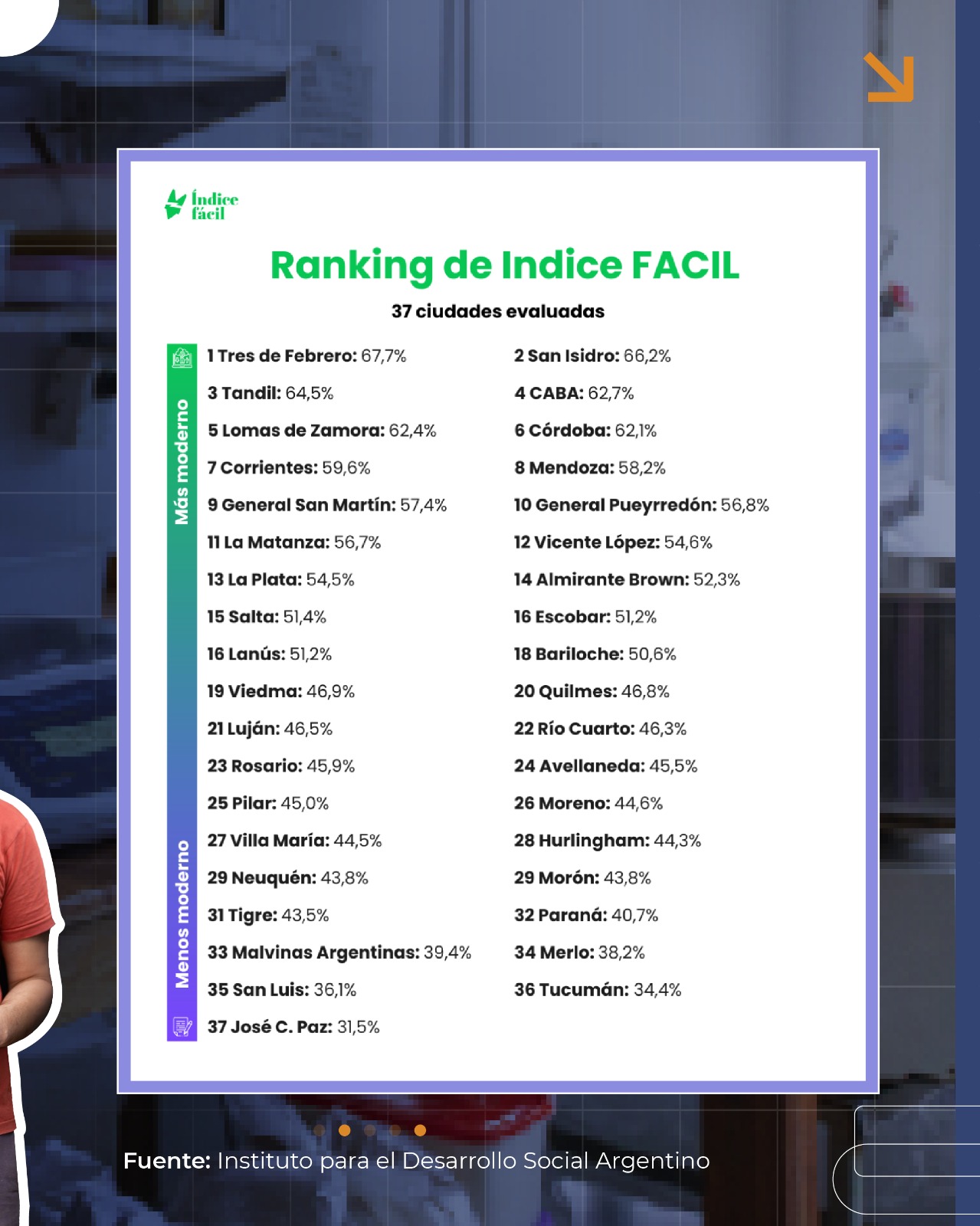De los 37 distritos evaluados, solo 12 superan el 60% de cumplimiento en los criterios de modernización. “La implementación contínua de políticas de digitalización y simplificación llevan a menos burocracia, más agilidad para quienes emprenden y mayor eficiencia en el Estado local”, expresó Valenzuela sobre el ranking.