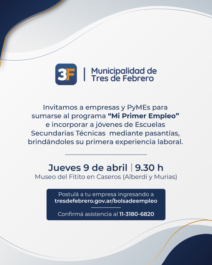 Si tenés una empresa o Pyme, sumate a «Mi primer Empleo» el programa que conecta a industrias con jóvenes del último año de Escuelas Secundarias con formación Técnica. De esta forma, los estudiantes podrán realizar su práctica profesionalizante, facilitando su primera experiencia laboral y acercando perfiles capacitados a las necesidades reales del sector productivo.