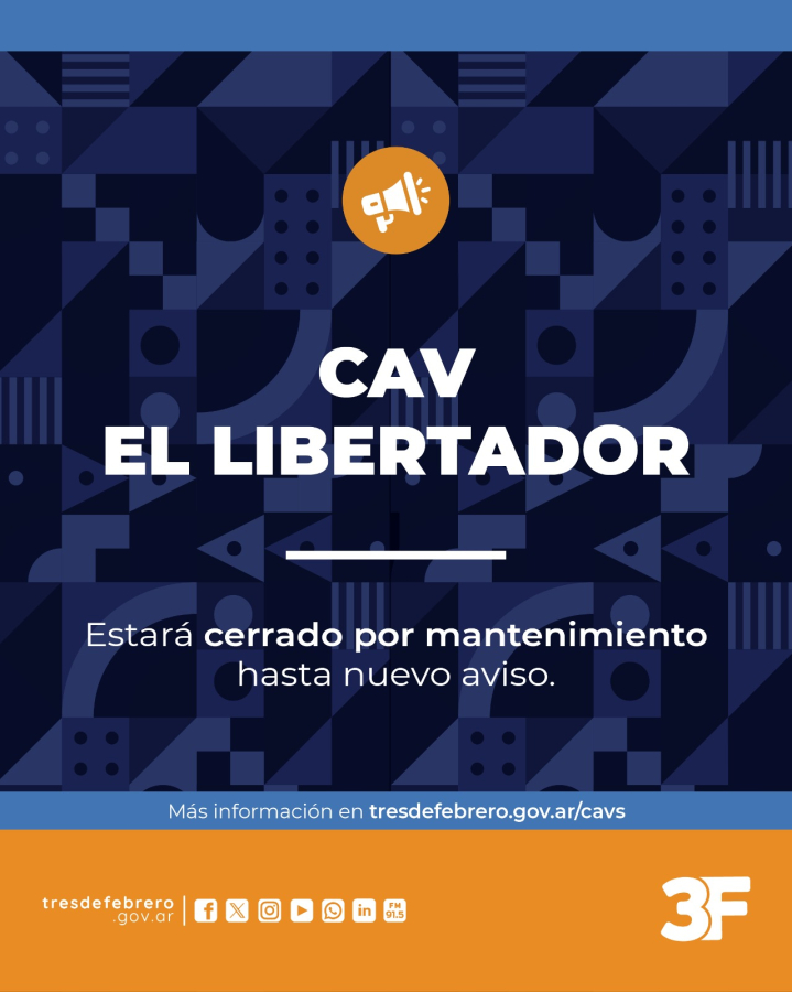 Te informamos que el CAV estará cerrado por mantenimiento hasta nuevo aviso.