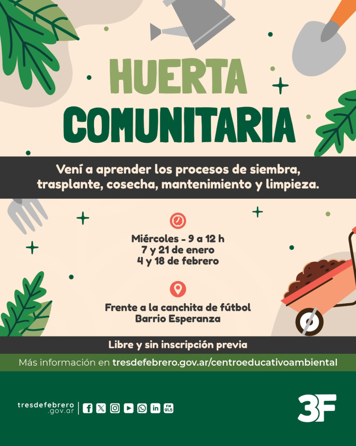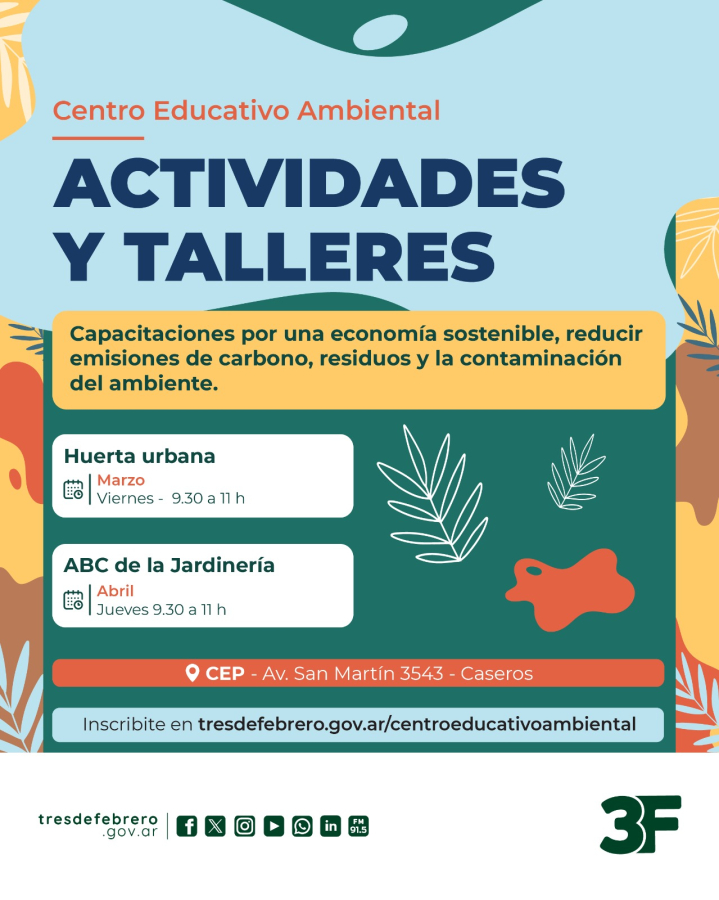 Para contactarte y conocer sobre los diferentes talleres podés escribirnos a: medioambiente@tresdefebrero.gov.ar