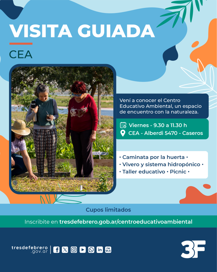 Tené en cuenta que si querés reservar una visita guiada debés enviar solicitud al mail oficial de la Secretaría de Ambiente y Servicios Públicos del Municipio de Tres de Febrero, a medioambiente@tresdefebrero.gov.ar con CC a ambiente3f@gmail.com