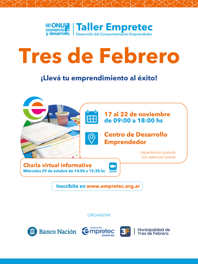 El Taller Empretec llega a Tres de Febrero para que potencies tu forma de emprender y lleves tu negocio al siguiente nivel. El curso diseñado por Naciones Unidas ya impulsó a más de 9.400 emprendimientos en todo el país.
