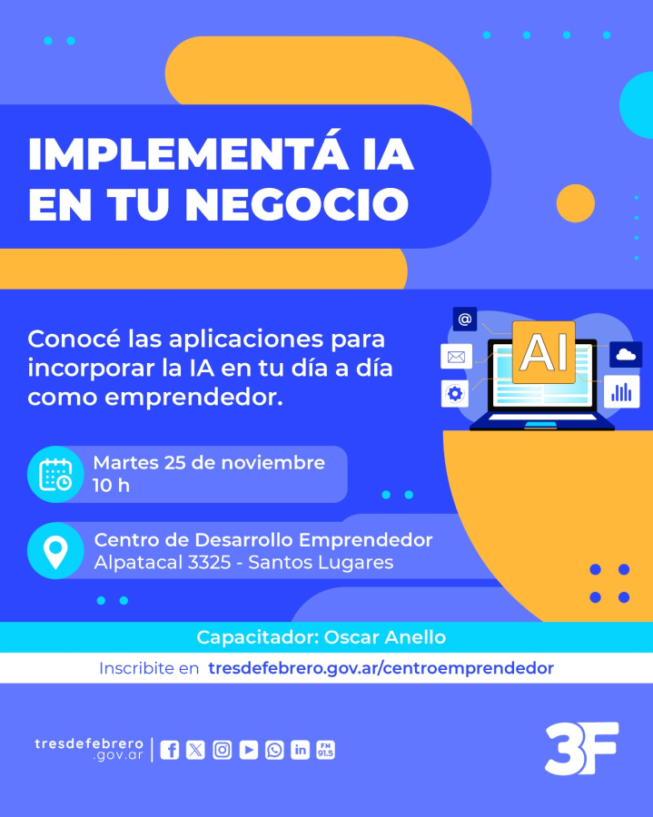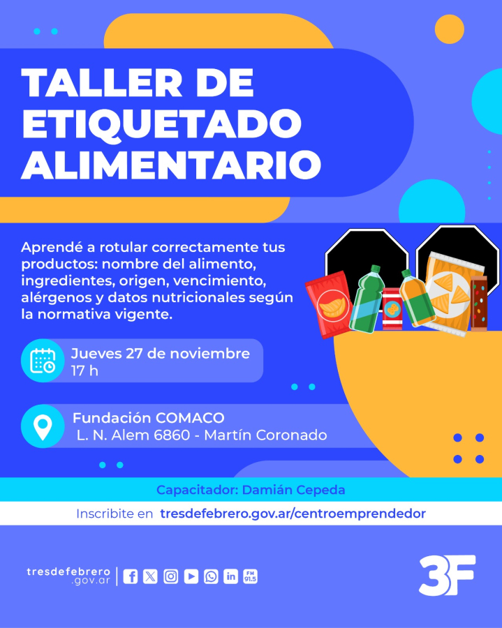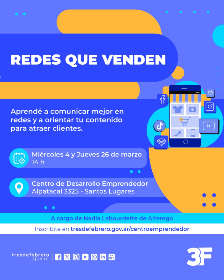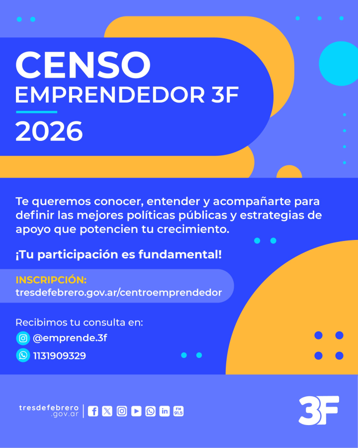 Para más información, enviá un mail a emprendedores@tresdefebrero.