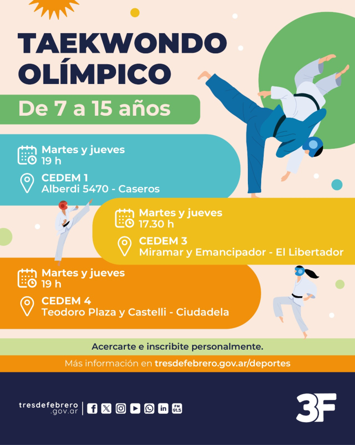 - Para anotarte a cualquier otra actividad en los demás centros, acercate al CEDEM más cercano a tu domicilio, con previa inscripción en Mi3F.
