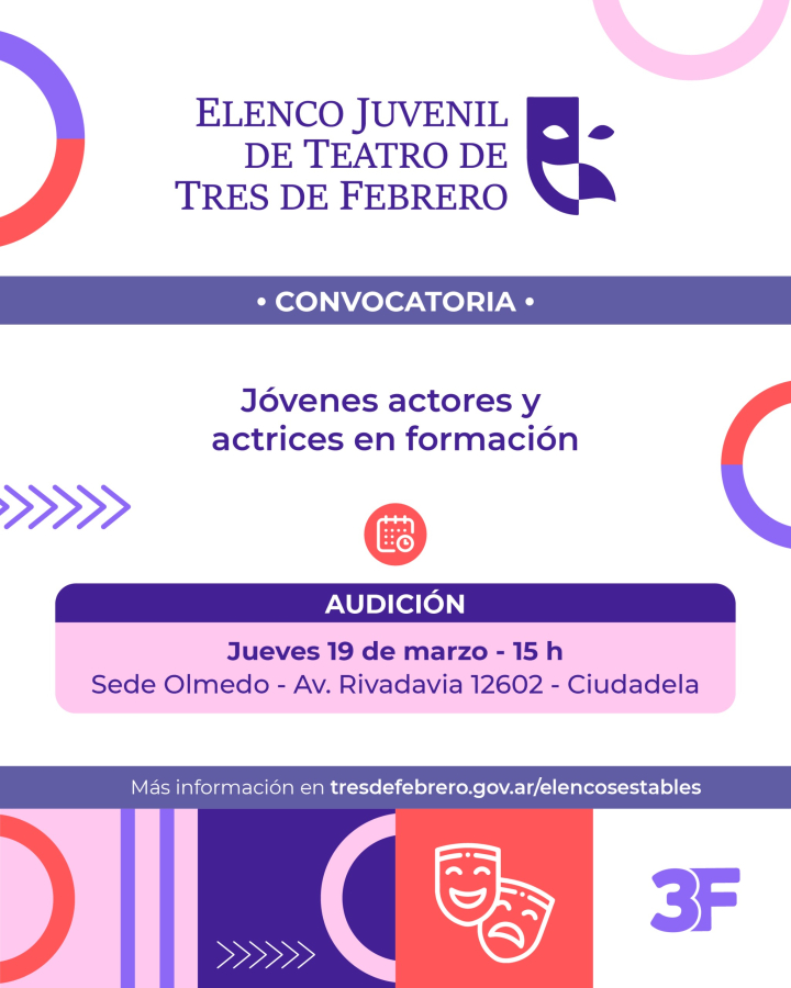 El Elenco Juvenil de Teatro de la Municipalidad de Tres de Febrero está en la búsqueda de nuevos actores y actrices en formación para brindarles un espacio de experimentación, desarrollo en equipo, canalizar y potenciar sus aptitudes artísticas.