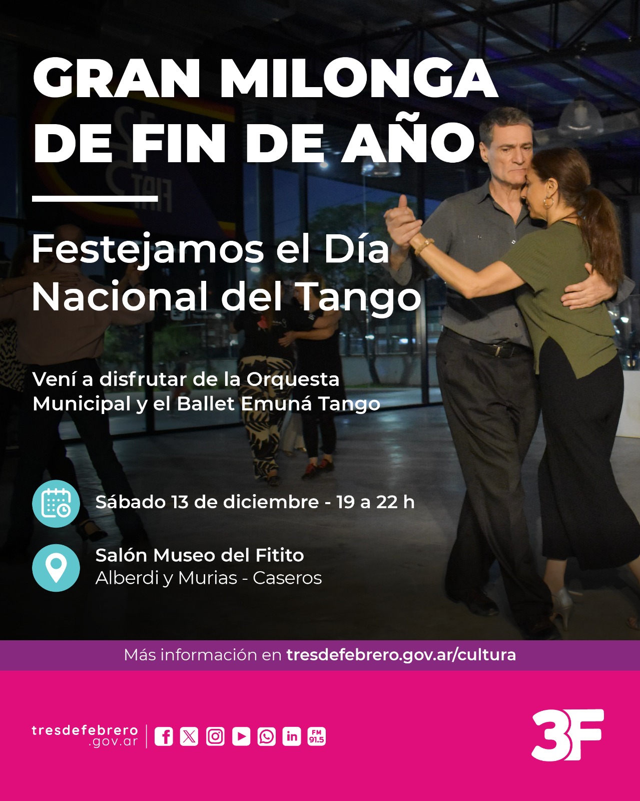 Fecha Dic 13 2025 Hora 7:00 pm - 10:00 pm Etiquetas Agenda Cultural,Destacada - Agenda Cultural GRAN MILONGA DE FIN DE AÑO Compartir este evento + Añadir Google Calendar Exportación + iCal / Outlook 00 días 00 horas 00 minutos 00 segundos