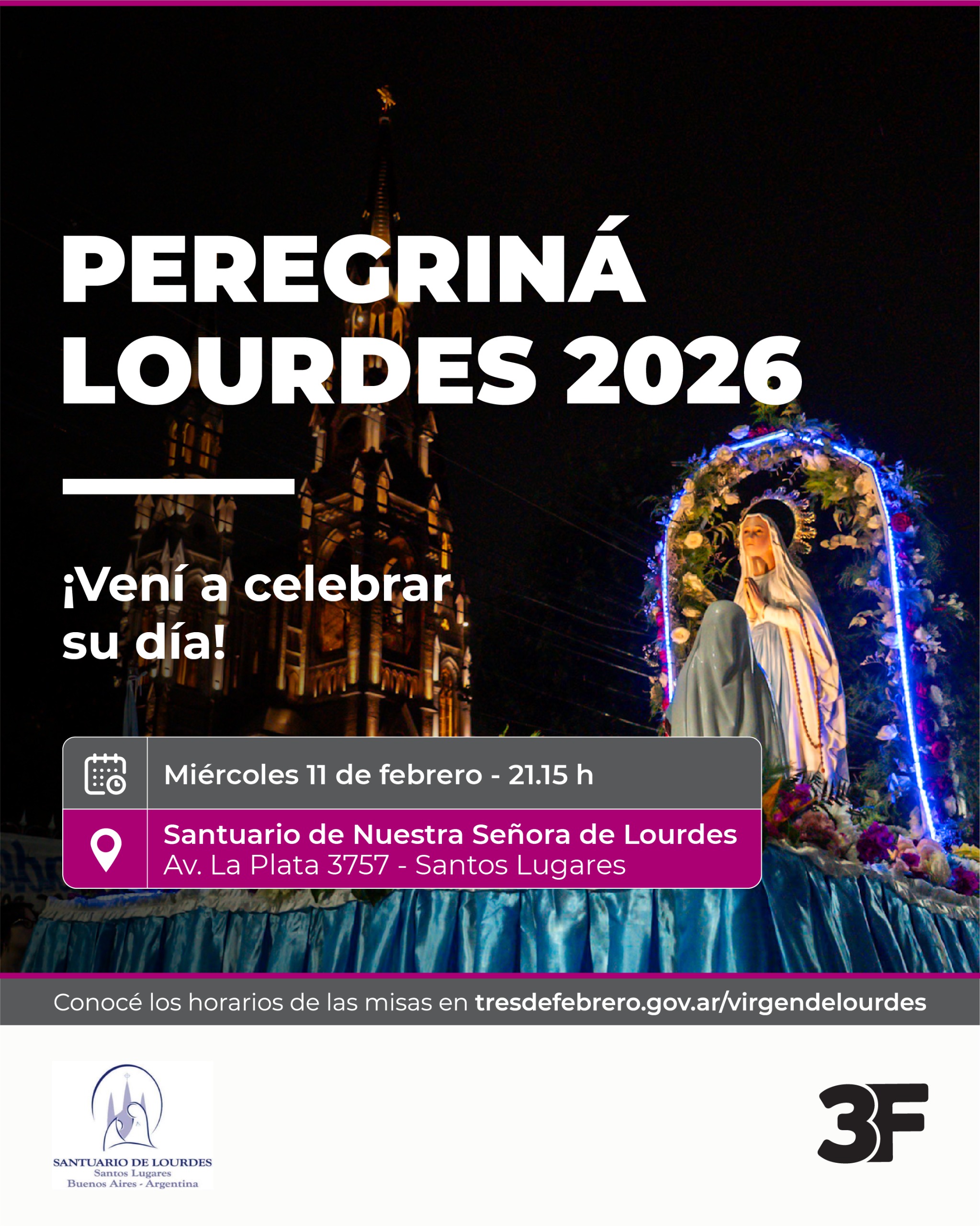 Fecha Feb 11 2026 Finalizdo! Hora 9:15 pm Etiquetas Agenda Cultural,Destacada - Agenda Cultural PEREGRINÁ A LOURDES 2026 Compartir este evento + Añadir Google Calendar Exportación + iCal / Outlook El evento está terminado.