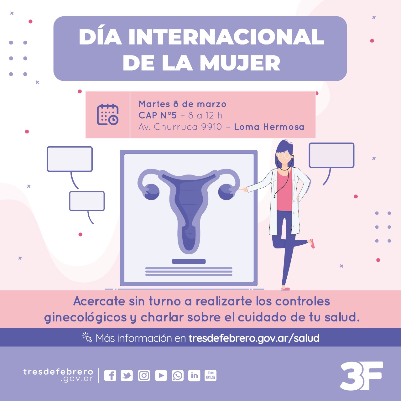 Fecha Mar 08 2022 Finalizdo! Hora 8:00 am - 12:00 pm Etiquetas Agenda Cultural,Destacada - Agenda Cultural DÍA INTERNACIONAL DE LA MUJER Compartir este evento + Añadir Google Calendar Exportación + iCal / Outlook El evento está terminado.