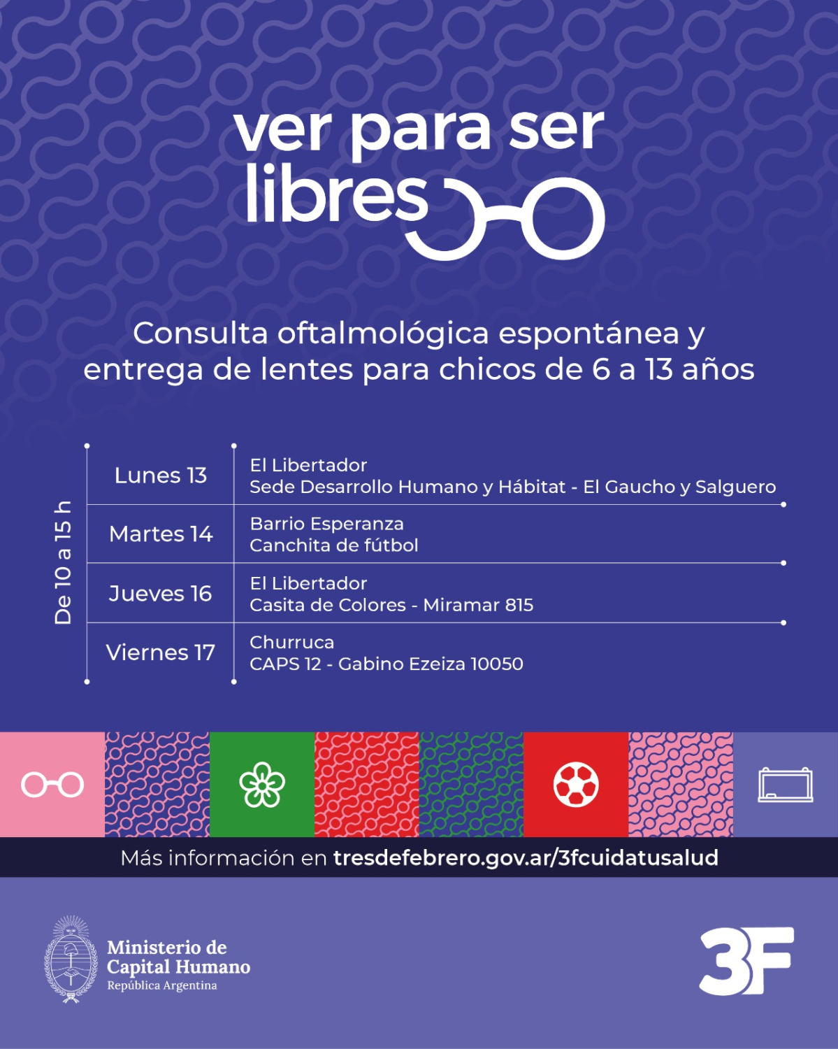 En articulación con el Ministerio de Capital Humano, llevamos adelante jornadas oftalmológicas destinadas a niños y niñas de entre 6 y 13 años. El objetivo de la iniciativa es detectar de forma temprana posibles problemas de visión que, de no ser tratados pueden interferir en su desarrollo intelectual.