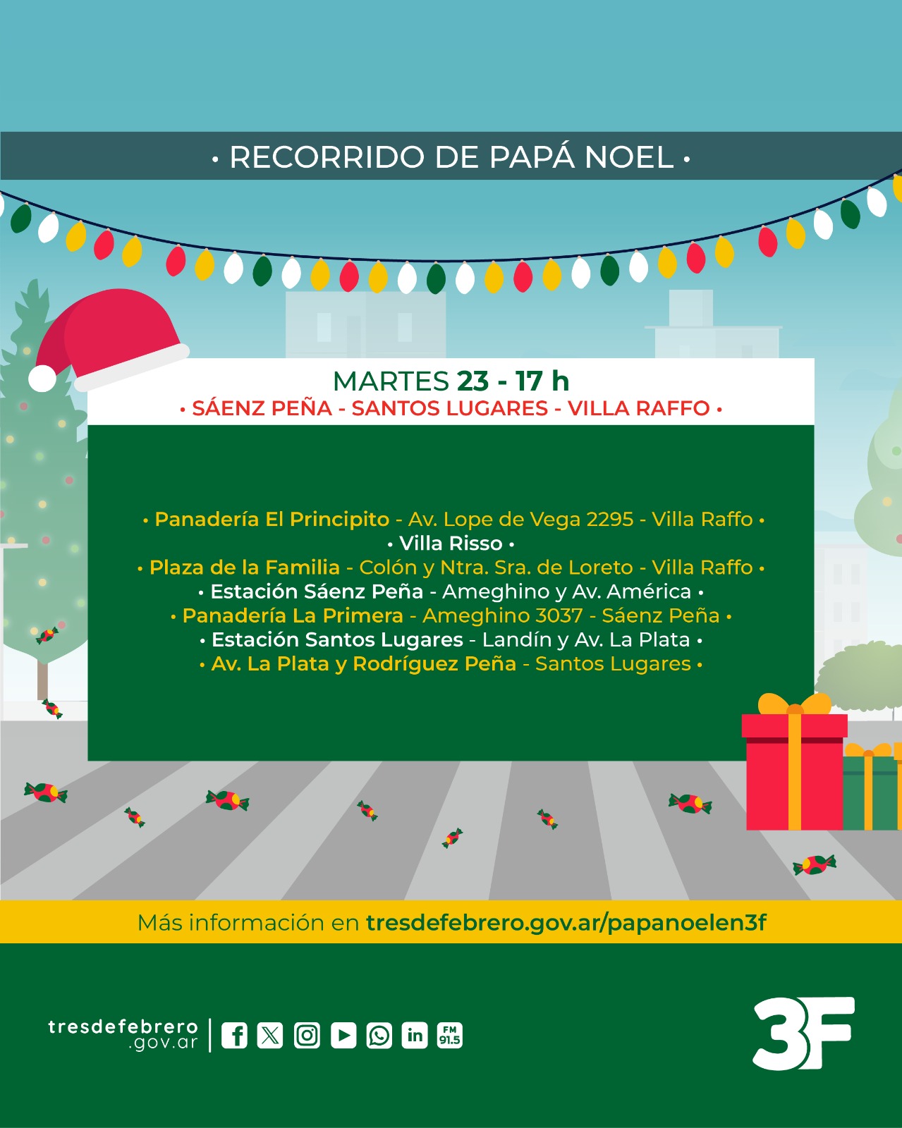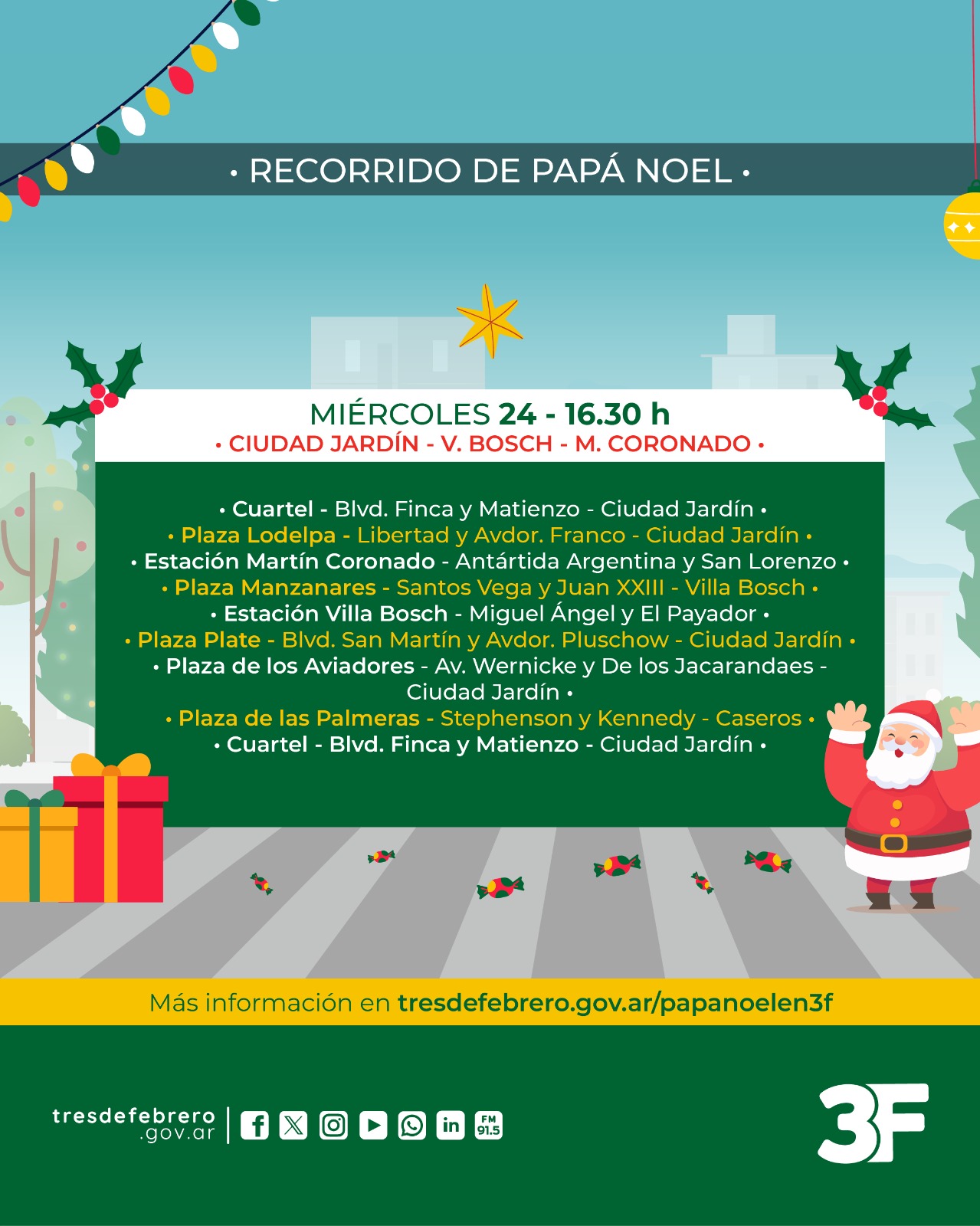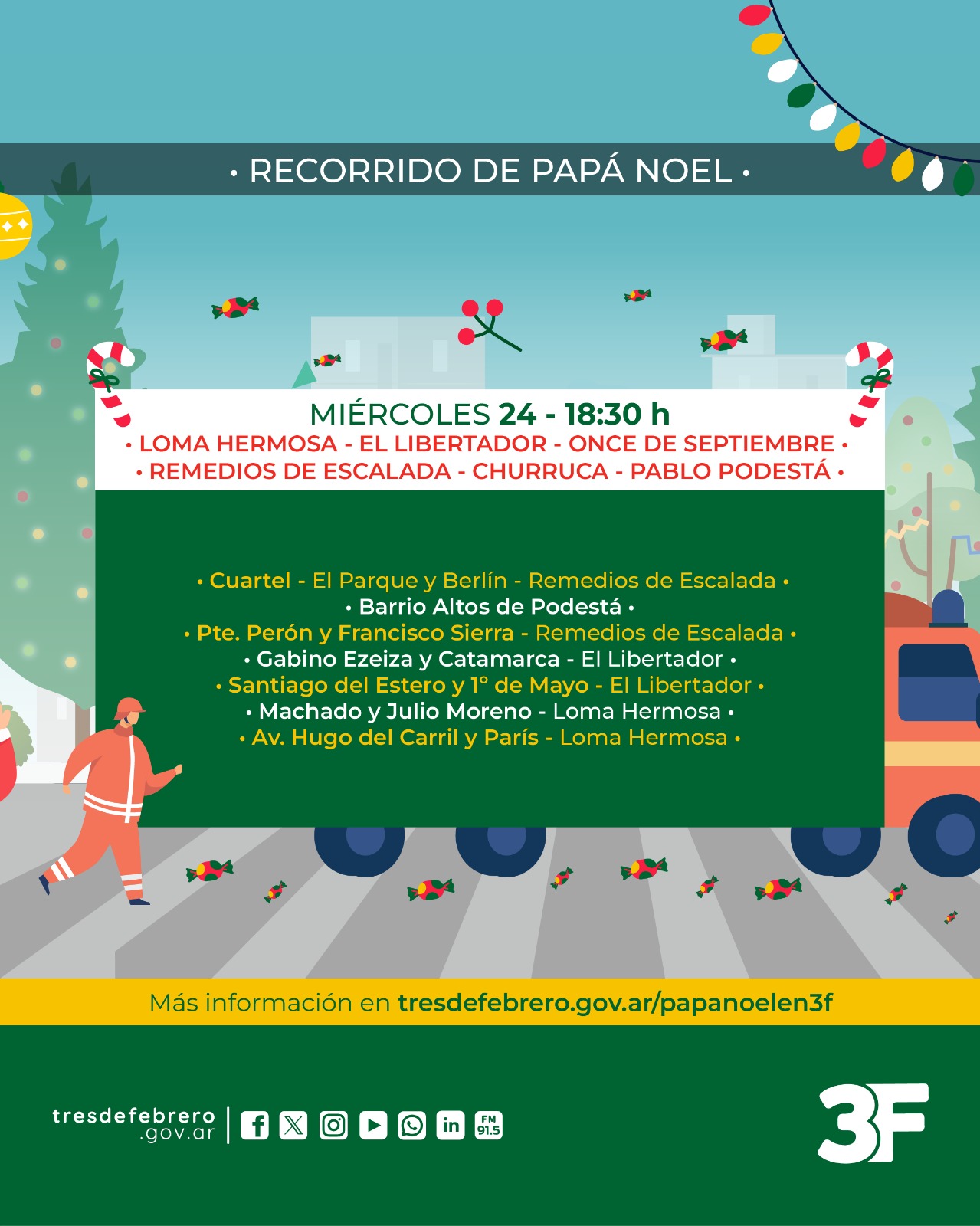 Como cada año, Papá Noel recorrerá las diferentes barrios junto a los Bomberos Voluntarios para festejar la Navidad y que los más chicos de la familia vivan un hermoso momento junto a sus amigos.