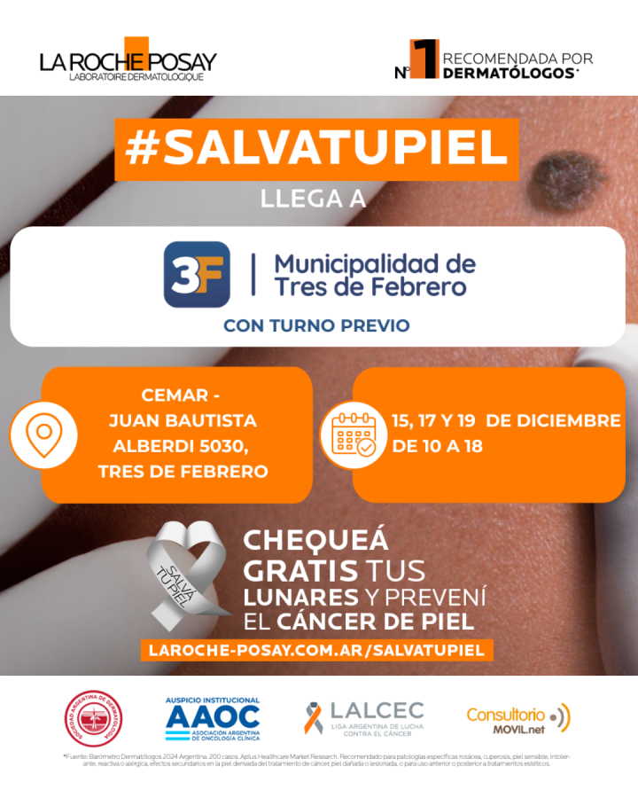 La Roche Posay vuelve al municipio para que puedas testear tus lunares y prevenir el cáncer de piel. Durante tres días, profesionales de la salud te brindarán atención médica y, en caso de ser necesario, serás derivado a un especialista.