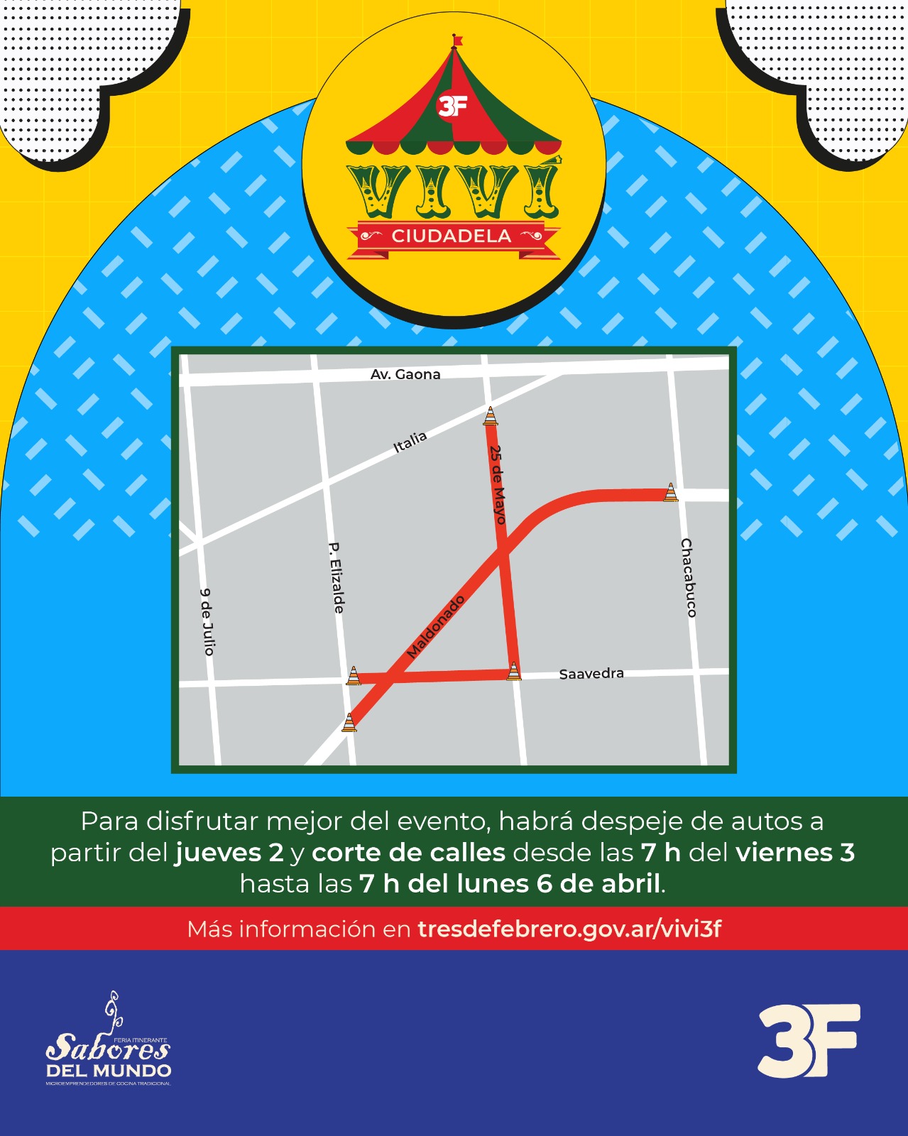Para disfrutar mejor del evento habrá despeje de autos a partir del jueves 2 y corte de calles desde las 7 h del viernes 3 hasta las 7 h del lunes 6 de abril.