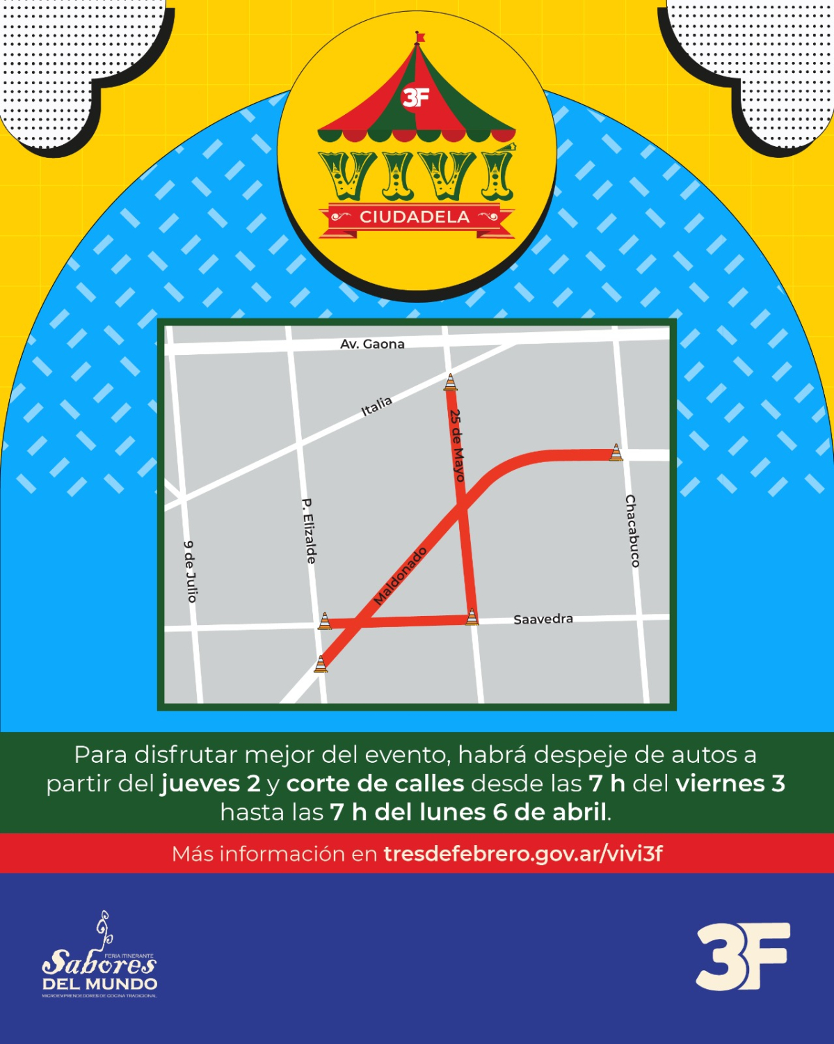 Para disfrutar mejor del evento habrá despeje de autos a partir del jueves 2 y corte de calles desde las 7 h del viernes 3 hasta las 7 h del lunes 6 de abril.